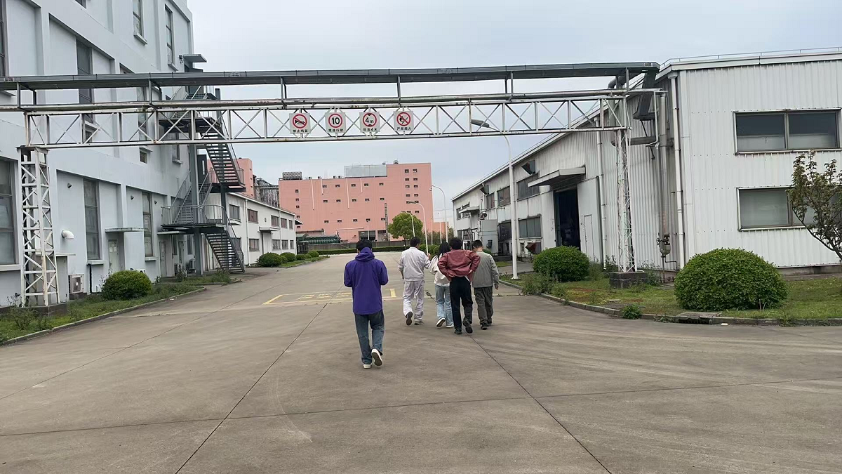 At 2:00 PM that afternoon, guided by the KONISHI team, Huiya General Manager Mr. Gu Xuxiang, Trumshi’s Ms. Jiang Qianqian, and the delegation entered the production area of Keyang Fine Chemical’s Suzhou factory for an on-site tour. The group walked along the wide, immaculate main roads of the factory grounds, with standardized production workshops and storage facilities on either side. Overhead pipe racks and cable trays were neatly arranged, and safety management signage — including speed limit signs and no-smoking signs, was clearly visible throughout, presenting an overall impression of the rigorous and standardized production management characteristic of Japanese-invested enterprises.