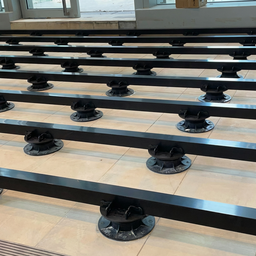 A: This depends on joist spacing, load requirements, and decking material. As a general guideline, typical installations use 4–6 pedestals per square meter for joist-based systems. Contact HUIYA’s technical team for a project-specific calculation.
