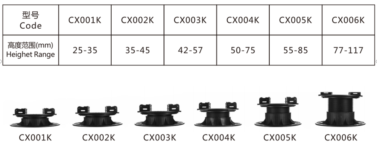 Adjustable Deck Pedestal for Joist – Trumshi CX00K Series | Height-Adjustable Floor Support System