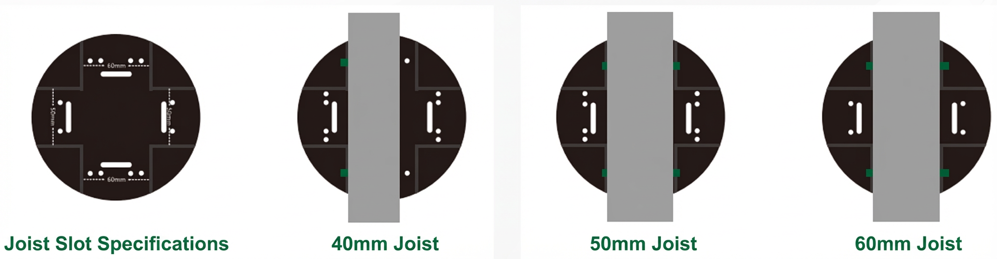 | Joist Cradle Slot Size | 50 mm × 60 mm, smaller than 50mm can be fixed on one side |